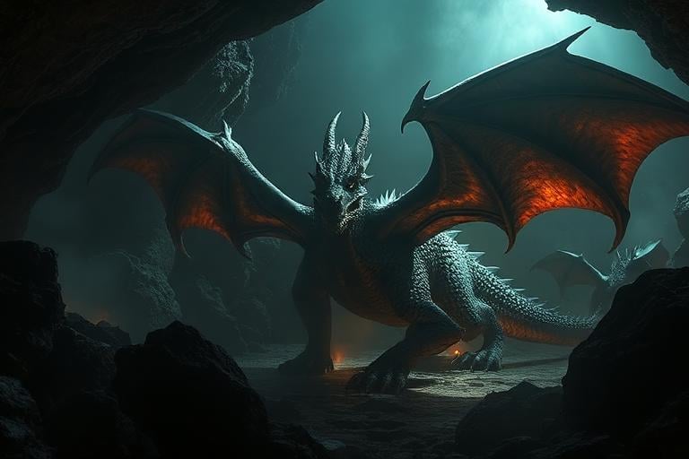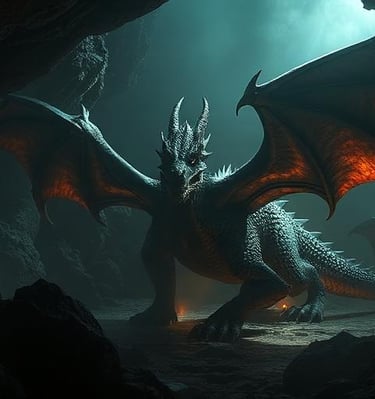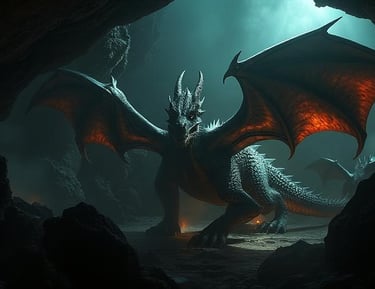 An immersive VR experience featuring a photorealistic dragon environment with interactive elements.