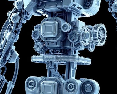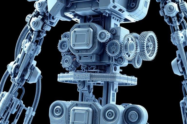 Complex mechanical rigging system for animating robotic characters with realistic joint movements,