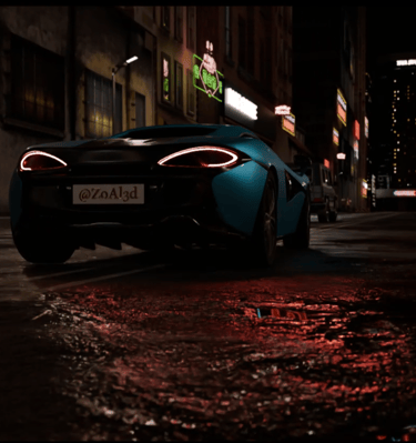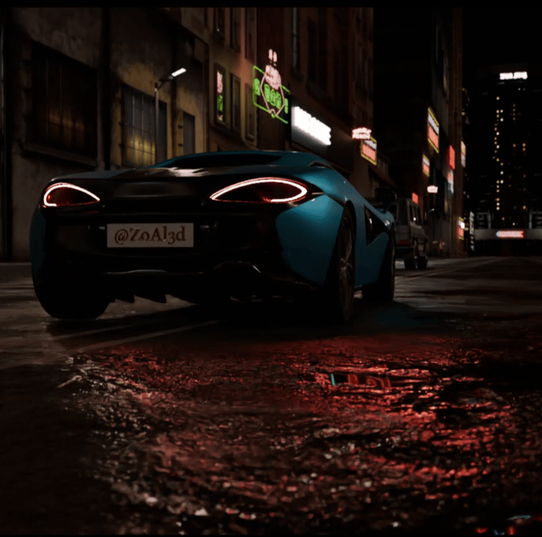 A futuristic cityscape with neon lighting and atmospheric effects, showcasing advanced modeling and lighting techniques.